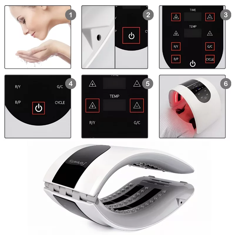 Puedes elegir entre seis colores LED para adaptar tu tratamiento a tus preferencias. Cada uno de ellos aborda diferentes preocupaciones, asegurando un enfoque personalizado del cuidado de la piel.